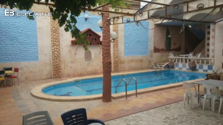 مطبخ اميركي .. غرفتين منامة .. صالون كبير .. حمام وتواليت .. مسبح مياه معقمة .. غرفة سهرة اطلالية .. انارة كاملة مؤمنة من مياه وكهرباء وعدة مطبخ
